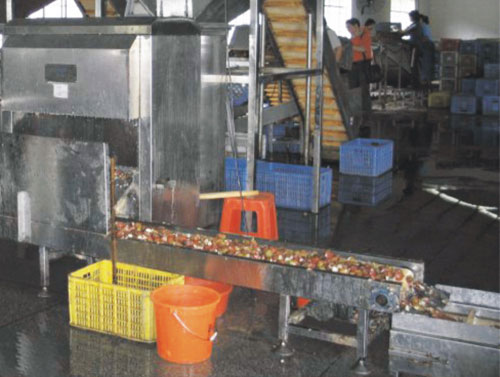 Roller style fruit selector→Brush washing machine→Belt conveyor→Water bubble washer→Fresh fruit grading machine→Belt conveyor (LZT3)→Mid-storage silo→Peeling machine→Vibrating conveyer→Jam making machine→Fruit nut conveyor→Fruit peel conveyor→Electric control panel