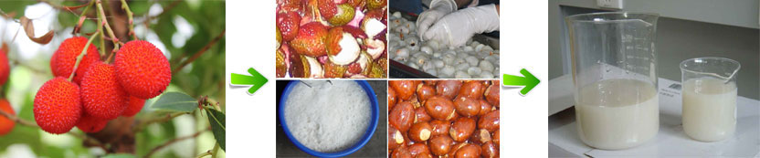 - Lychee and longan processing plant can automatically grade, clean, sterilize, peel, remove seeds, make jam and press juice, then ferment to become lychee wine, fill to get finished product. It is widely used in the downstream processing of lychee and longan juice and fruit wines.